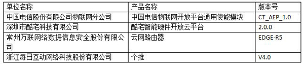 通過智能硬件(IOT)可信評估(第四批)以及移動信息化可信選型評估(第五批)名單