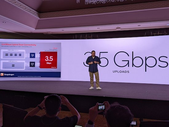 在連接能力上,年初亮相的驍龍X65調(diào)制解調(diào)器讓該平臺還擁有最高10Gbps的峰值下行,以及3.5Gbps的峰值上行,夏威夷現(xiàn)場高通安蒙還利用這一特性,僅通過搭載X65的手機(jī)就與Verizon公司Kyle Malady實(shí)現(xiàn)了全球首個(gè)8K HDR視頻電話。并且X65也讓新一代驍龍8移動平臺還支持R16規(guī)范。