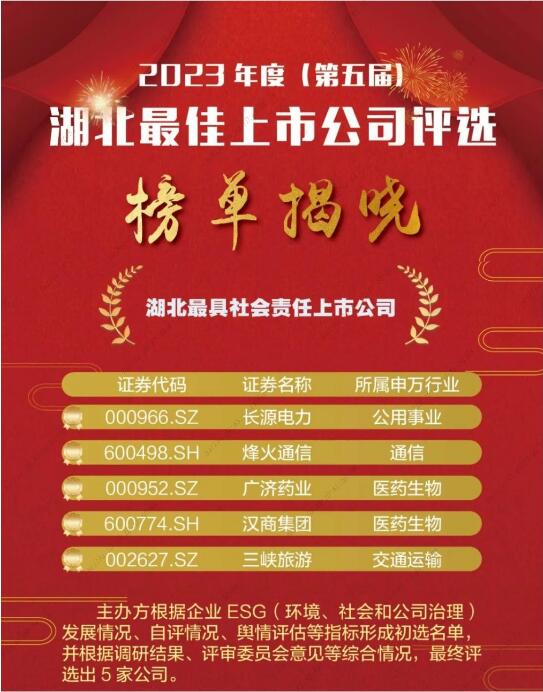 近日,由湖北日?qǐng)?bào)傳媒集團(tuán)主辦的2023年湖北最佳上市公司評(píng)選榜單出爐,烽火通信獲評(píng)“湖北最具社會(huì)責(zé)任(ESG)上市公司”榮譽(yù)。