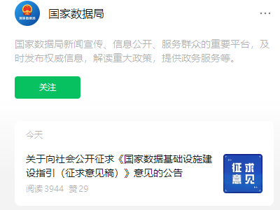 11 月 22 日消息,國家數(shù)據(jù)局今日發(fā)布《國家數(shù)據(jù)基礎(chǔ)設(shè)施建設(shè)指引(征求意見稿)》(IT之家以下簡稱“指引”),就此向社會(huì)公開征求意見(2024 年 11 月 22 日至 12 月 1 日)。
