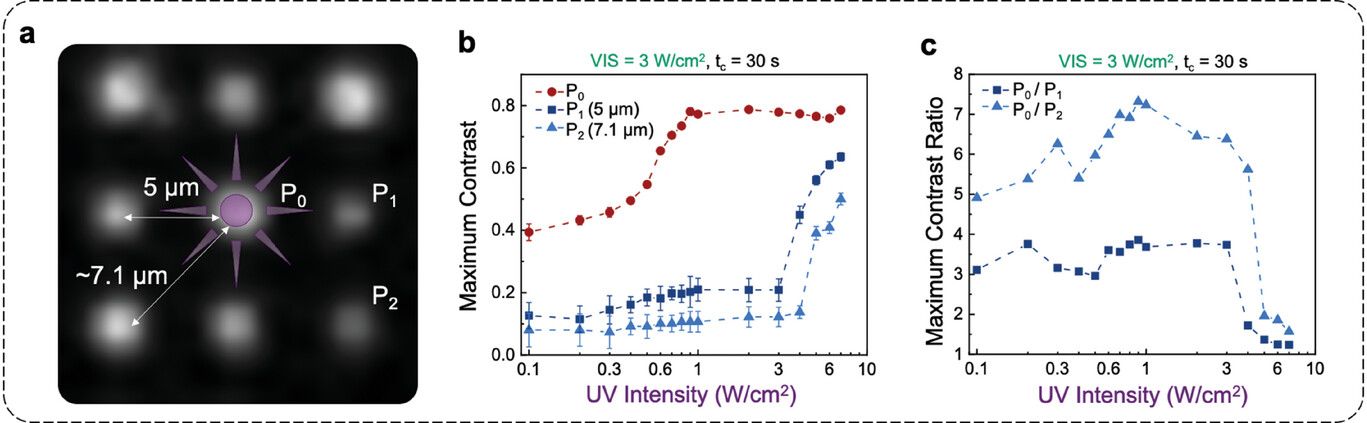 團隊利用光學(xué)邏輯門,實現(xiàn)純粹用光來處理基本信息。研究小組在聚合物球上進(jìn)行了多次讀、寫和擦除循環(huán),在微結(jié)構(gòu)陣列的同一位置寫下了字母表。