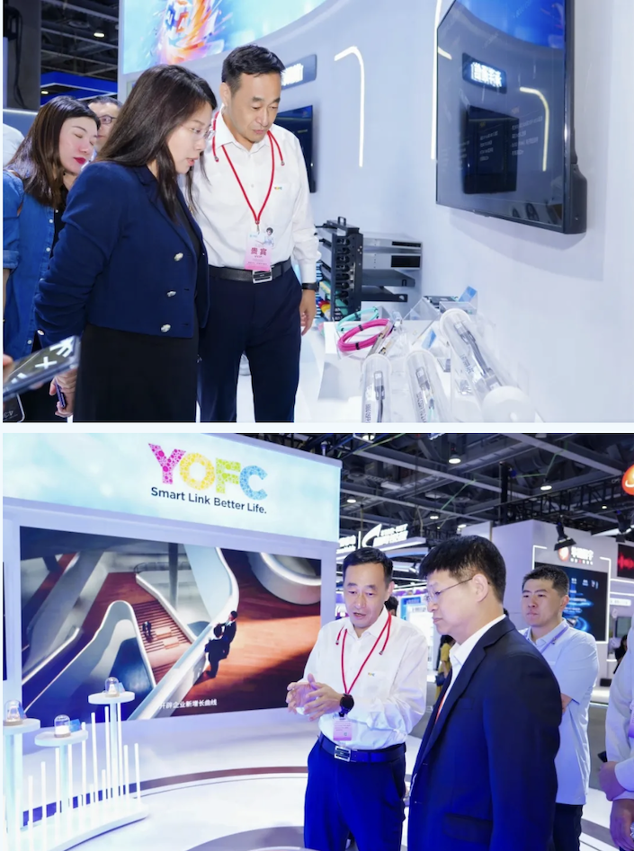中國移動供應鏈管理中心副總經(jīng)理崔芳,中國移動網(wǎng)絡事業(yè)部副總經(jīng)理顧寧倫,中國移動貴州公司黨委書記、董事長、總經(jīng)理張麗等蒞臨長飛展臺參觀指導,長飛公司副總裁聶磊接待。