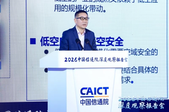 飛象網(wǎng)訊 低空經(jīng)濟作為國家戰(zhàn)略性新興產(chǎn)業(yè),正處于政策驅動與應用探索雙輪加速的關鍵階段。其發(fā)展不僅關乎新質(zhì)生產(chǎn)力的培育,更對城市空間重構、產(chǎn)業(yè)轉型升級和公共服務創(chuàng)新具有深遠影響。12月13日,在“2026中國信通院深度觀察報告會”上,針對低空經(jīng)濟的發(fā)展現(xiàn)狀、統(tǒng)籌推進機制及高質(zhì)量發(fā)展面臨的挑戰(zhàn)等問題,中國信息通信研究院首席專家續(xù)合元系統(tǒng)闡述了核心觀點。續(xù)合元指出:“低空經(jīng)濟要實現(xiàn)高質(zhì)量發(fā)展,必須堅持‘以場景為牽引、以協(xié)同為保障、以基建為底座’,分階段推進高價值應用落地,構建多方協(xié)同、集約高效、安全可控的發(fā)展生態(tài)!