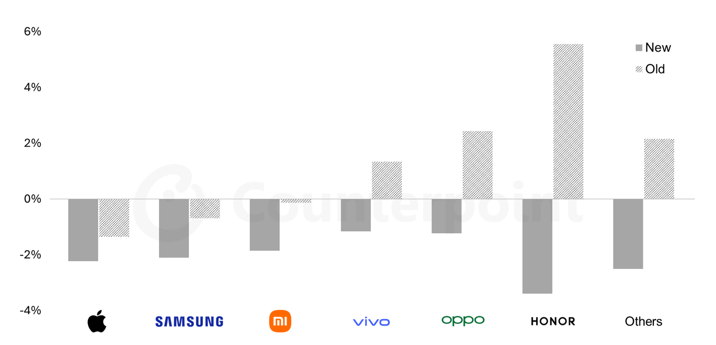 Counterpoint 高級(jí)分析師王陽(yáng)(音譯)表示:“蘋果與三星在未來(lái)幾個(gè)季度的抗風(fēng)險(xiǎn)能力最強(qiáng)。但對(duì)于其他廠商而言,在市場(chǎng)份額與利潤(rùn)率的平衡上,其操作空間要小得多,處境將十分艱難。隨著明年時(shí)間推移,這一態(tài)勢(shì)將在中國(guó)本土手機(jī)廠商身上體現(xiàn)得尤為明顯。”