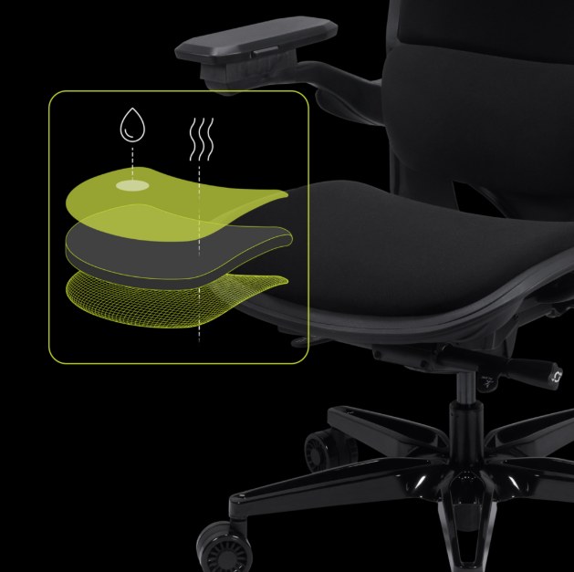 針對傳統(tǒng)電競椅久坐悶熱痛點(diǎn),MAG A10采用ERGO-COOL透氣系統(tǒng):