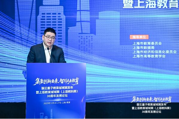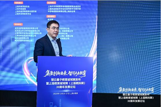 2025年12月26日,在智云量子教育城域網(wǎng)發(fā)布暨上海教育城域網(wǎng)三十周年發(fā)展論壇上,上海市數(shù)據(jù)局副局長翁軼叢、中國電信上海公司副總經(jīng)理龔豪、上海市教育委員會信息化工作處處長韓崇虎、上海市大數(shù)據(jù)中心副主任王明政、上海市經(jīng)濟和信息化委員會人工智能發(fā)展處副處長陳釗共同啟動“智云量子教育城域網(wǎng)”。