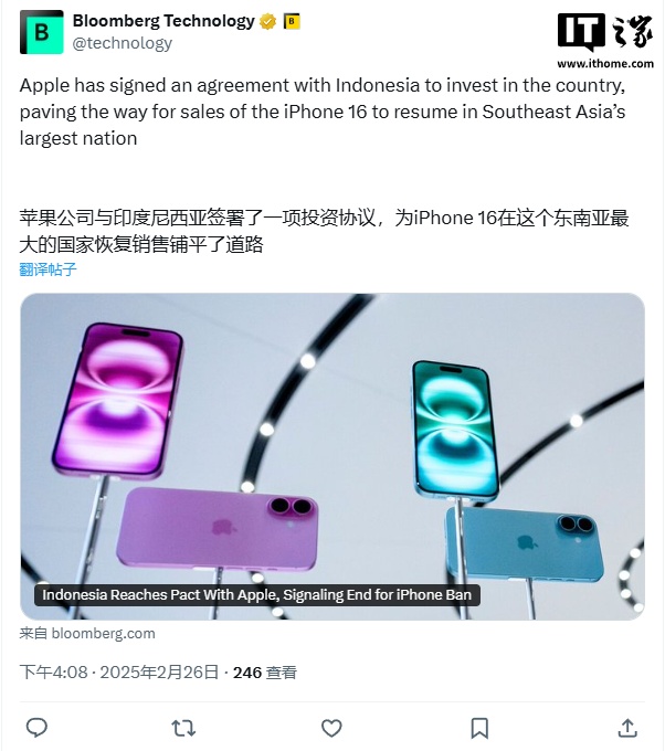 印尼宣布與蘋果達(dá)成協(xié)議 iPhone16禁令即將結(jié)束