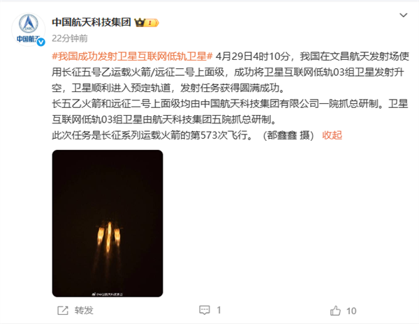 此前,航天科技集團(tuán)五院抓總還研制了三枚衛(wèi)星互聯(lián)網(wǎng)高軌衛(wèi)星,分別與去年2月29日、8月1日、10月10日發(fā)射成功。