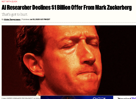 扎克伯格在商戰(zhàn)中崇尚簡(jiǎn)單粗暴直接。過(guò)去幾個(gè)月時(shí)間,他的Meta展開了一場(chǎng)“人才閃電戰(zhàn)”,對(duì)OpenAI、谷歌、蘋果等公司展開了一場(chǎng)突襲,用難以置信的報(bào)價(jià)直接大量挖走頂尖AI技術(shù)人才。OpenAI對(duì)此深受其害,今年7月甚至一次性被挖走了八名核心技術(shù)骨干,其中還包括了剛從谷歌挖來(lái)的DeepMind人才。