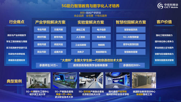 中信科移動(dòng)始終致力于將前沿通信技術(shù)融入現(xiàn)代化教育進(jìn)程,通過(guò)構(gòu)建深度融合的“政-產(chǎn)-學(xué)-研-用”生態(tài),持續(xù)培養(yǎng)符合數(shù)字時(shí)代需求的復(fù)合型人才。依托其公司在5G領(lǐng)域的深厚積累,將先進(jìn)通信技術(shù)與教育場(chǎng)景深度融合,構(gòu)建覆蓋“崗、課、賽、訓(xùn)、證”五位一體的數(shù)字教育生態(tài),通過(guò)三大核心解決方案推動(dòng)教育向高質(zhì)量、數(shù)字化轉(zhuǎn)型邁進(jìn)。
