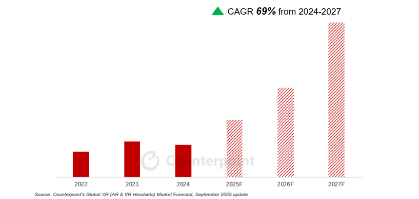 CounterPoint:2025 上半年 VR 頭顯出貨量同比下降 14%、AR 智能眼鏡增長 50%