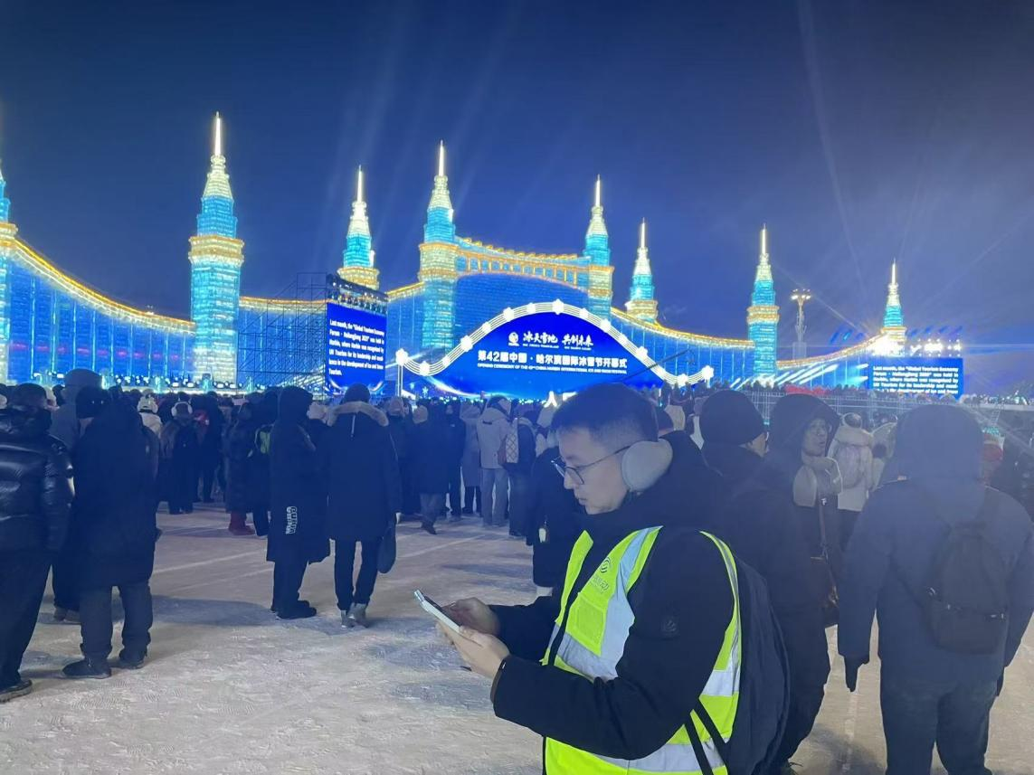 元旦期間,當眾多游客齊聚中央大街跨年祈福時,保障人員迎著凜冽寒風,在人群中穿梭巡檢,實時監(jiān)控網絡數據,并及時優(yōu)化調整參數,以滿格信號守護著人們的團圓時刻。