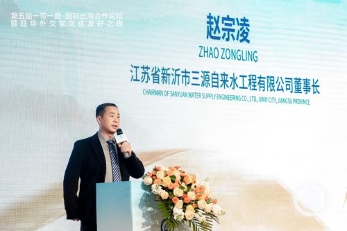 2026年1月18日,第五屆“中國(guó)企業(yè)出海合作論壇暨駐華外交官文化友好之夜”在北京舉辦。江蘇省新沂市三源自來水工程有限公司作為國(guó)內(nèi)水務(wù)工程領(lǐng)域的領(lǐng)先企業(yè),公司董事長(zhǎng)趙宗凌受邀出席并做主旨發(fā)言,圍繞供水工程技術(shù)創(chuàng)新與智能化升級(jí),為沿線國(guó)家推進(jìn)供水設(shè)施改造工程、筑牢民生保障提供可借鑒的中國(guó)方案。