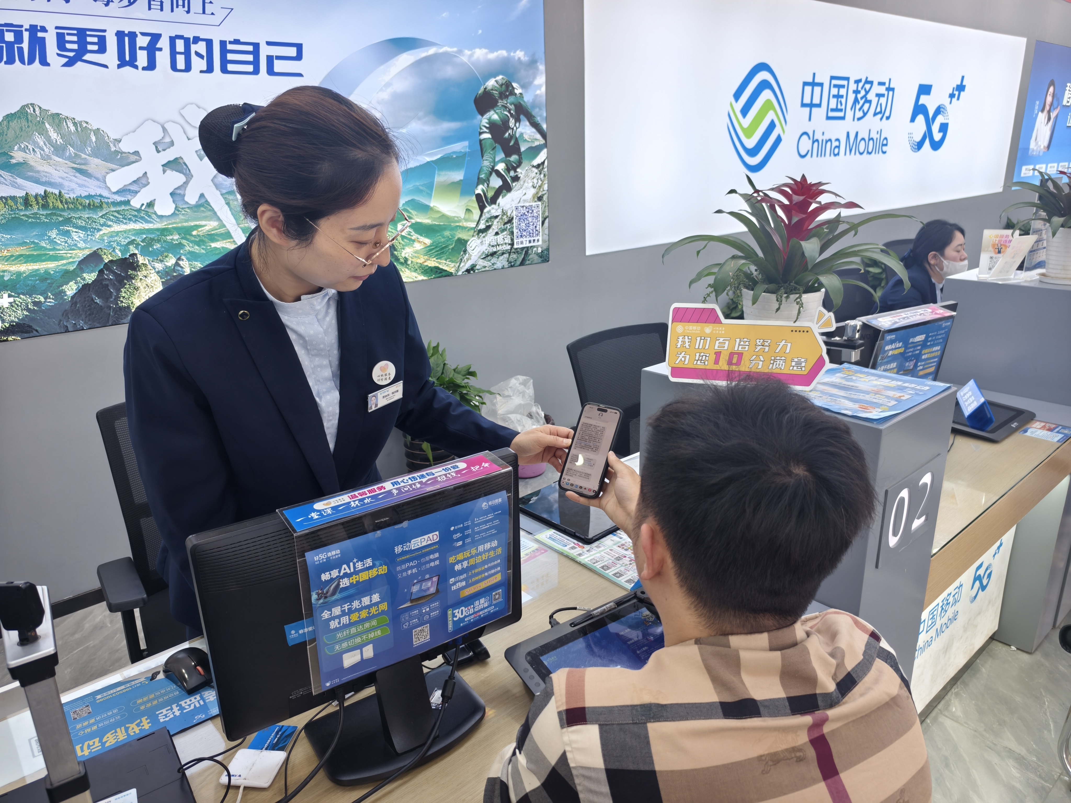 曾經(jīng)的服務(wù)廳,是辦卡、繳費(fèi)、買手機(jī)的地方;如今,它成了社區(qū)里的信息站、休息角、小課堂?蛻魜磉@里,不一定為了業(yè)務(wù),可能只是歇個(gè)腳、充個(gè)電、問個(gè)路,或是單純想和人說說話。服務(wù)的內(nèi)涵,也從“解決通信問題”延伸到“回應(yīng)生活所需”。有年輕人來問如何給父母選合適的套餐,有家長(zhǎng)來咨詢?nèi)绾卧O(shè)置青少年上網(wǎng)模式,有老人來學(xué)習(xí)怎么用手機(jī)掛號(hào)看病……每一個(gè)問題背后,都是一個(gè)真實(shí)的生活場(chǎng)景;每一次解答,都是一次情感的連接。