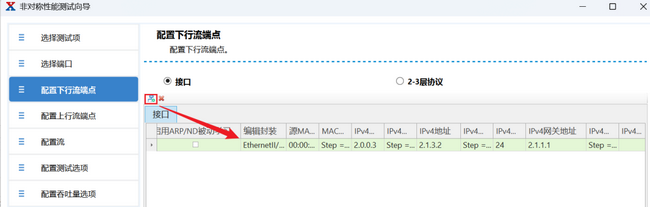 對上行流端點(diǎn)和下行流端點(diǎn)配置接口信息。可以支持配置普通V4/V6接口,模擬主機(jī)。