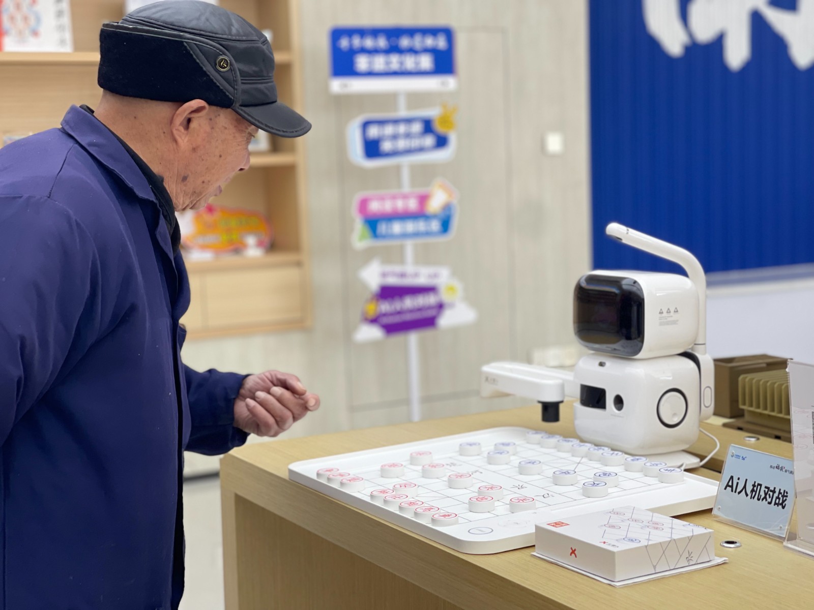 體驗(yàn)環(huán)節(jié)將氣氛推向高潮。老人們在工作人員引領(lǐng)下,走近各類AI智能產(chǎn)品。能對話、會唱歌的智能音箱讓大家忍俊不禁;通過語音就能控制開關(guān)的智能家居,令人連連稱奇;而靈巧的迎賓機(jī)器人則引來陣陣贊嘆。一位爺爺在體驗(yàn)AI棋手后感慨:“沒想到現(xiàn)在機(jī)器這么聰明,跟我們下棋有來有回!”這些原本看似遙遠(yuǎn)的科技,此刻變得可觸、可感、可互動,消解了陌生感,播種了親近感。