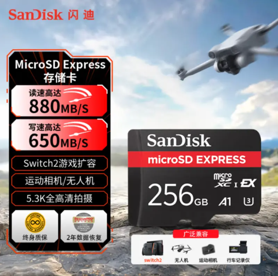 此外,產(chǎn)品提供兩年的RescuePRO Deluxe文件恢復(fù)服務(wù),搭配終身有限質(zhì)保,讓玩家使用時(shí)無后顧之憂,盡情沉浸于游戲世界。值得一提的是,除了游戲場景,SanDisk閃迪的microSD Express存儲卡還適用于無人機(jī)、運(yùn)動相機(jī)、行車記錄儀等設(shè)備,憑借強(qiáng)勁性能為多元場景提供可靠存儲支持。