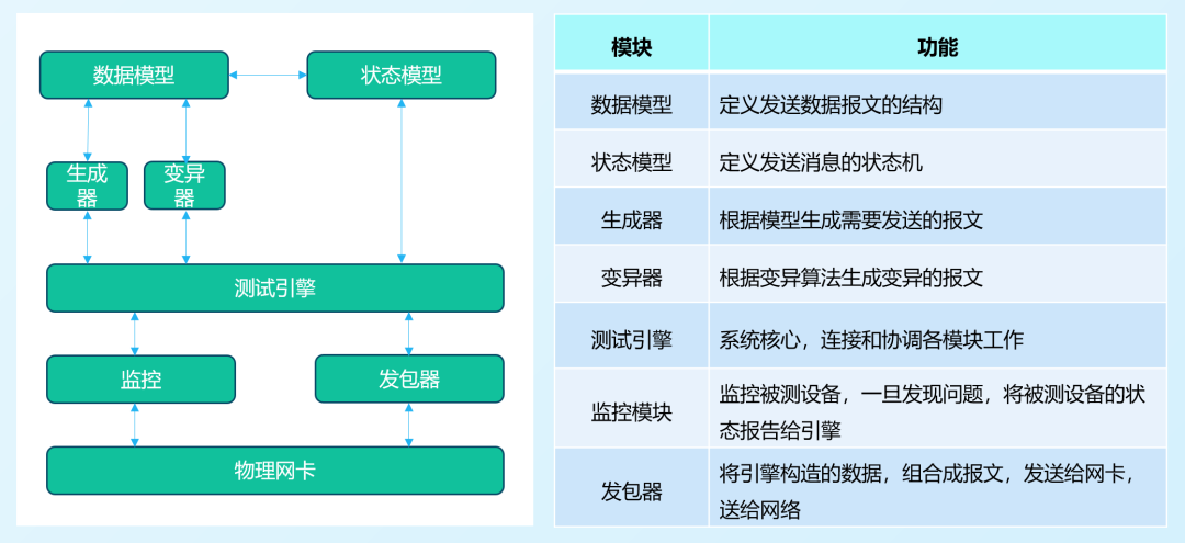 2、智能模糊生成:自動(dòng)生成可能導(dǎo)致系統(tǒng)崩潰或行為異常的數(shù)據(jù)包。