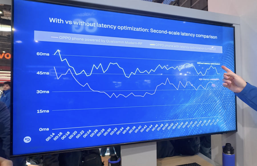 OPPO手機演示了一個很多年輕人經(jīng)常觸及的案例:在人流密集的商場咖啡廳里來上一局電子競技游戲。高通的調(diào)制解調(diào)器及射頻系統(tǒng)由于能夠利用智能數(shù)據(jù)服務(wù)識別特定游戲數(shù)據(jù)流,從而進(jìn)行底層加速,降低游戲平均時延,并且優(yōu)化副卡的信號,減少其對主卡連接的干擾。對比測試顯示,在相同網(wǎng)絡(luò)條件下,搭載高通調(diào)制解調(diào)器及射頻系統(tǒng)的OPPO手機在開啟時延優(yōu)化后,可將平均時延降低25%。這意味著,通過AI賦能的高通5G調(diào)制解調(diào)器,即便玩家處于激烈對戰(zhàn)中或執(zhí)行關(guān)鍵操作動作時,網(wǎng)絡(luò)連接也不太可能因其他應(yīng)用或后臺進(jìn)程而受到干擾。