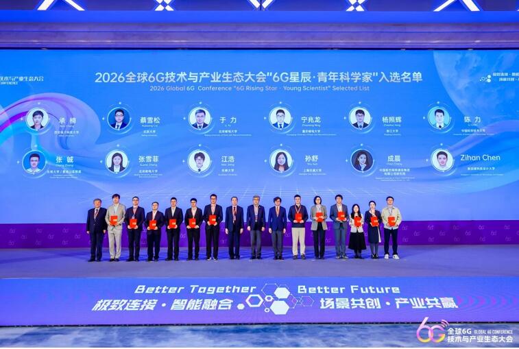 同時,大會還發(fā)布了2026年度“6G星辰”青年科學家與博士名單,通過征集與評選,6G大會每年都面向全球遴選具有創(chuàng)新潛力的青年科研人才,為其提供展示與交流平臺,進一步強化6G領(lǐng)域的人才梯隊建設(shè)。
