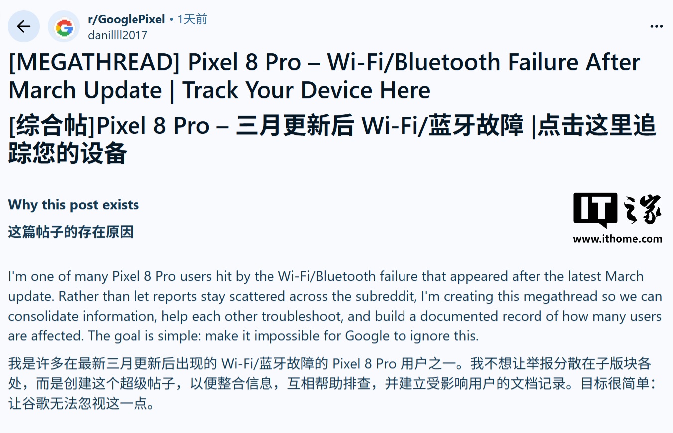 IT之家曾于 3 月 19 日報道,包括 Pixel 10 系列、Pixel 9 系列、Pixel 8 Pro 等用戶反饋,反饋安裝谷歌 3 月更新后,出現(xiàn)在鎖屏或息屏顯示(AoD)界面死機(jī)問題。