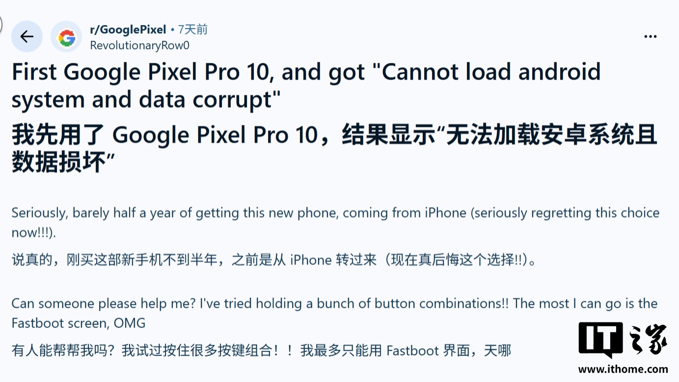 故障原因目前尚不明確。雖然 Google 已在官方問題追蹤平臺上確認(rèn)收到反饋,并將問題移交工程團(tuán)隊,但未公布具體成因或修復(fù)時間表。部分用戶嘗試通過側(cè)載固件修復(fù),但未能解決問題。有用戶反饋,即便手機(jī)能正常啟動,更新后也出現(xiàn)了隨機(jī)崩潰現(xiàn)象。